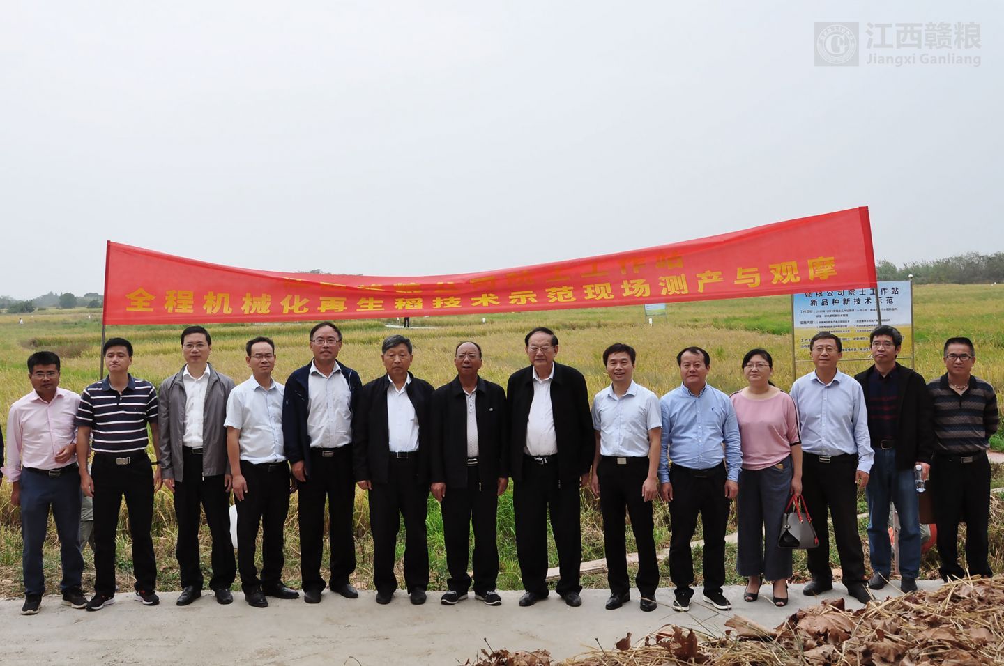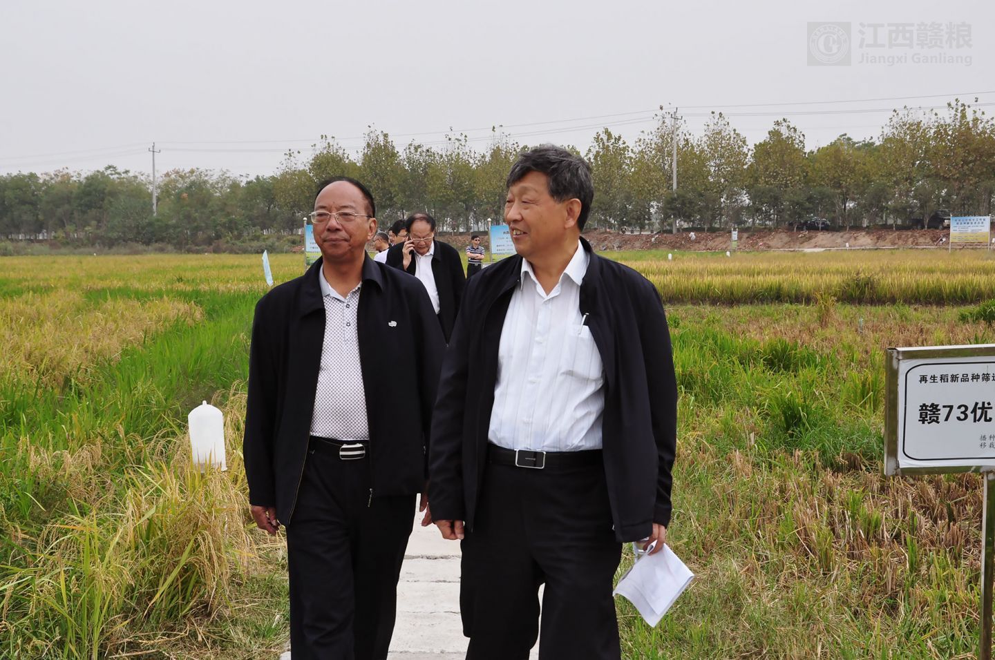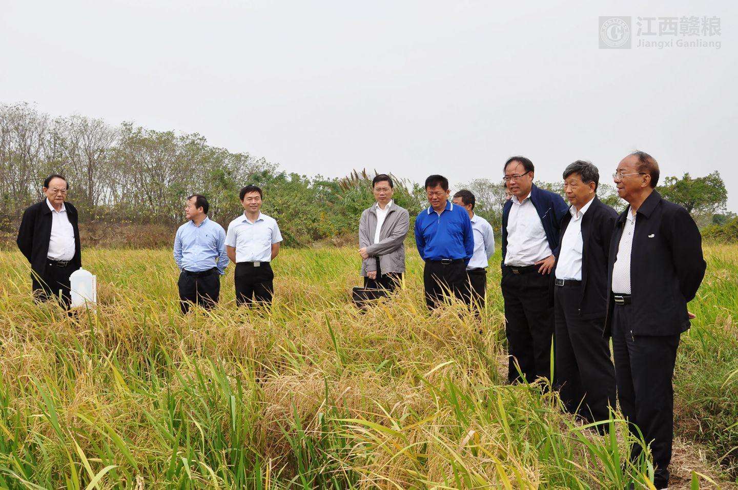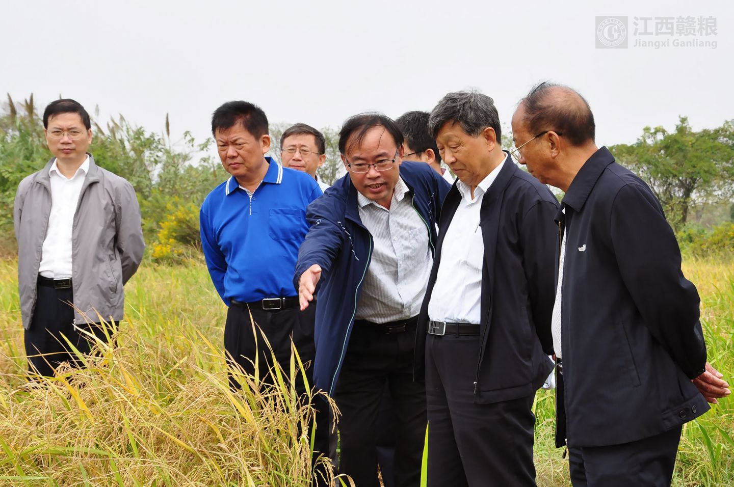 院士、領(lǐng)導(dǎo)、專(zhuān)家先到贛糧公司院士工作站南昌岡上試驗(yàn)基地現(xiàn)場(chǎng)觀摩再生稻的試驗(yàn)示范情況。院士一行步入田間查看了再生稻的生長(zhǎng)情況,對(duì)再生稻示范品種“內(nèi)6優(yōu)7075”再生季長(zhǎng)勢(shì)和結(jié)實(shí)率表示肯定。對(duì)生產(chǎn)試驗(yàn)中存在的不足進(jìn)行實(shí)地指導(dǎo)。針對(duì)因第一季機(jī)械收割造成的嚴(yán)重碾壓影響再生季產(chǎn)量的問(wèn)題,三位院士表示要進(jìn)行栽培與機(jī)械聯(lián)合技術(shù)攻關(guān)。