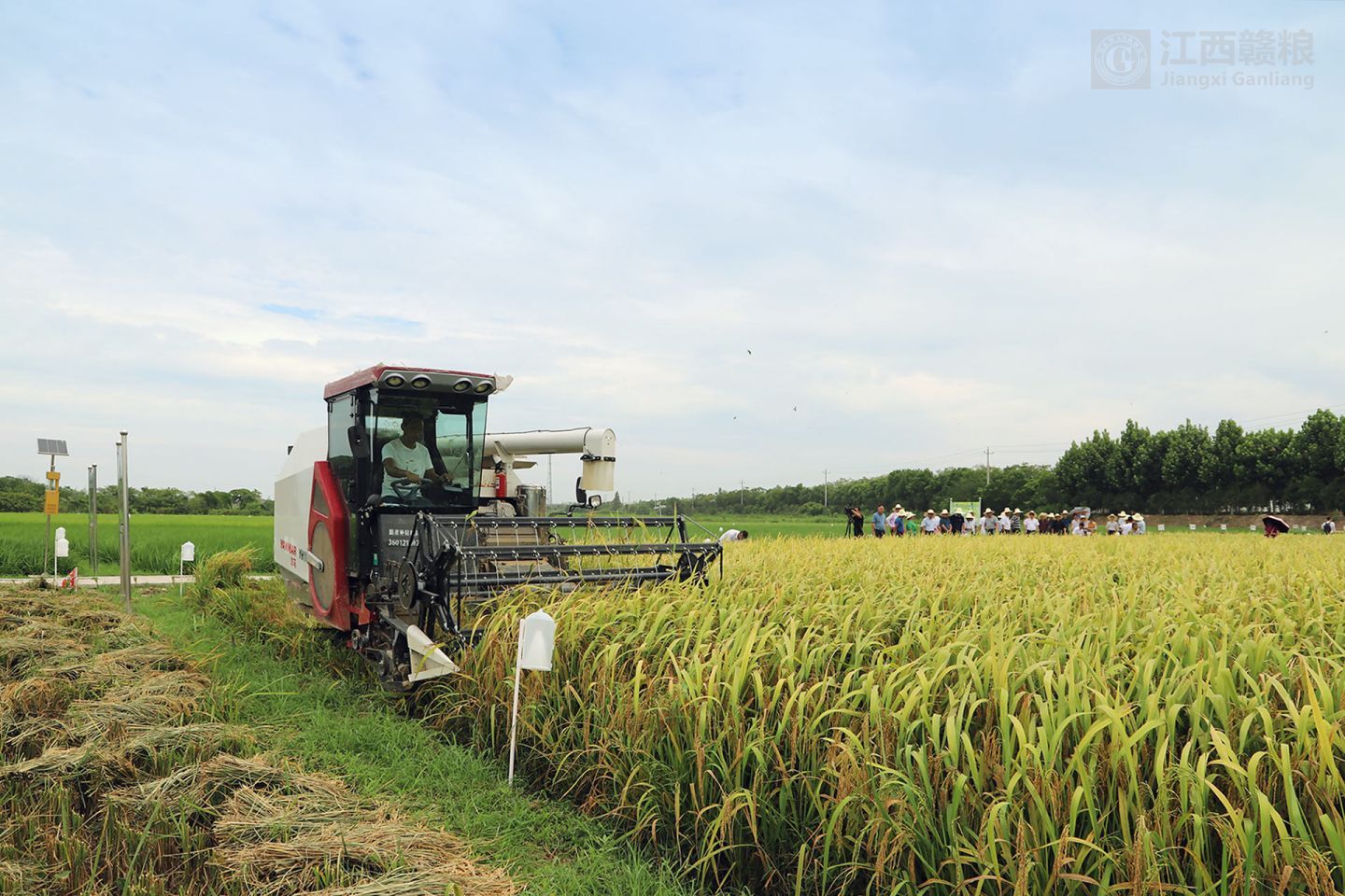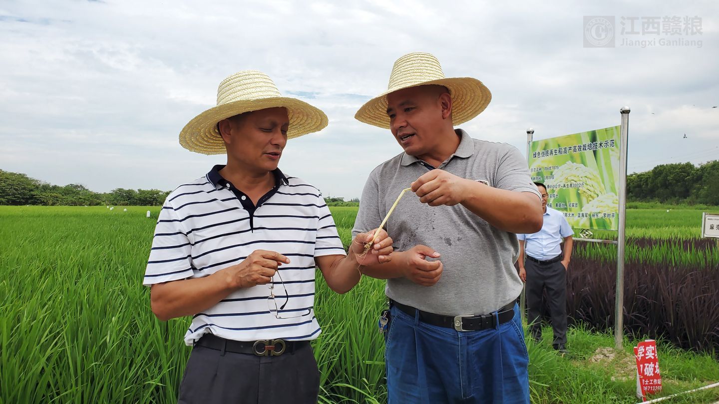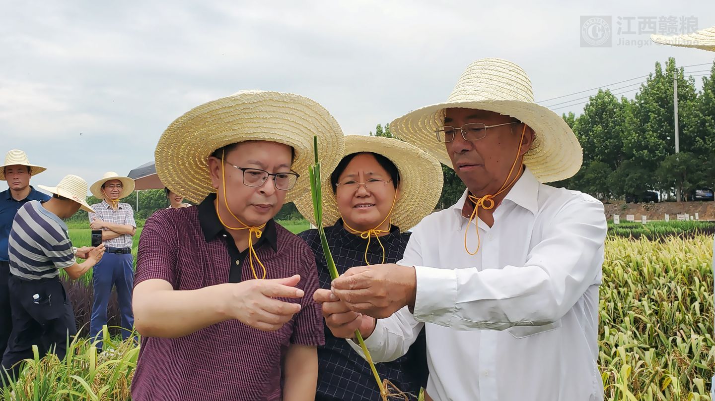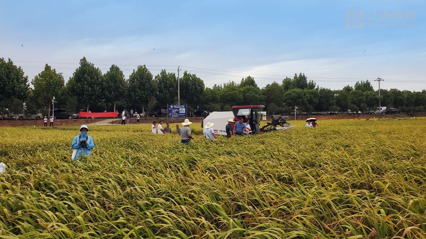 2020年8月9日上午,江西贛糧公司院士工作站舉行“2020年再生稻頭季機(jī)收測(cè)產(chǎn)觀摩會(huì)”,中國科學(xué)院謝華安院士和中國工程院羅錫文院士出席。另外,出席觀摩會(huì)的還有江西省科協(xié)羅瑩書記、江西省農(nóng)業(yè)農(nóng)村廳劉光華副廳長、江西省氣象局孫國棟副局長、江西省原科技廳副書記謝金水副書記、江西省院士專家服務(wù)中心李國強(qiáng)主任、江西農(nóng)業(yè)大學(xué)賀浩華副校長、江西省農(nóng)業(yè)科學(xué)院余傳源副院長、南昌縣政府胡朝輝副縣長等領(lǐng)導(dǎo),以及院士團(tuán)隊(duì)專家,省農(nóng)業(yè)農(nóng)村廳、省氣象局、江西農(nóng)大、省農(nóng)科院等有關(guān)領(lǐng)導(dǎo)和專家,南昌市、南昌縣有關(guān)部門領(lǐng)導(dǎo)和專家。