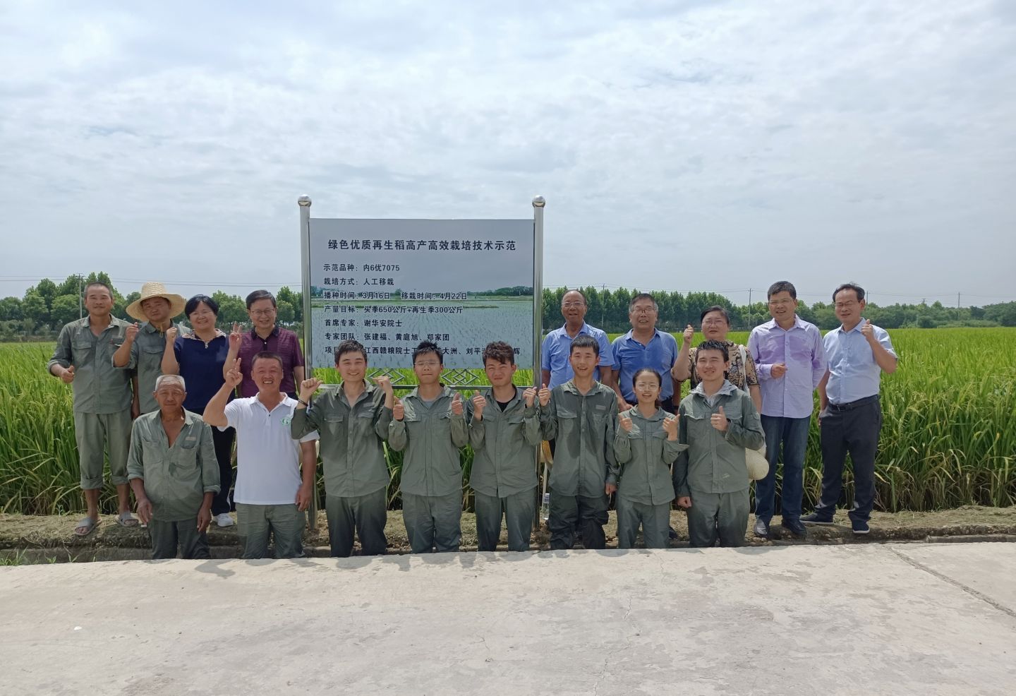 2021年7月20日上午,江西贛糧公司院士工作站謝華安院士到岡上基地考察指導(dǎo)再生稻的試驗(yàn)與示范工作。江西省農(nóng)業(yè)農(nóng)村廳劉光華副廳長(zhǎng),江西省農(nóng)業(yè)技術(shù)推廣中心文喜賢副主任,南昌縣科協(xié)鄧必亭主席、萬(wàn)小紅副主席,江西贛糧實(shí)業(yè)有限公司羅利平董事長(zhǎng)、羅香生總經(jīng)理等領(lǐng)導(dǎo)專家陪同考察。