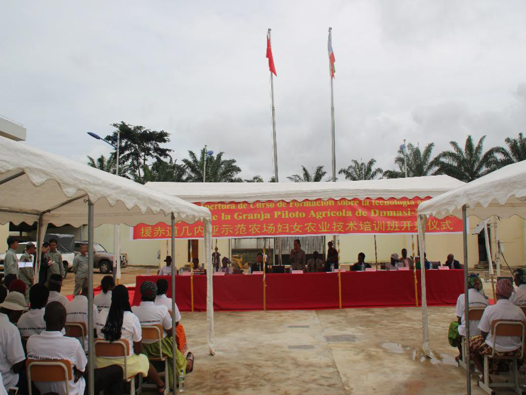 2019年10月28日,援赤道幾內(nèi)亞示范農(nóng)場婦女農(nóng)業(yè)技術(shù)培訓(xùn)班舉行開班儀式,中國駐赤道幾內(nèi)亞大使亓玫、經(jīng)商處參贊蘇建國、婦女部駐大陸代表恩桑、赤道幾內(nèi)亞農(nóng)林部駐大陸代表米查、中央政府駐涅方市代表安貝內(nèi)等70余人出席開班儀式。